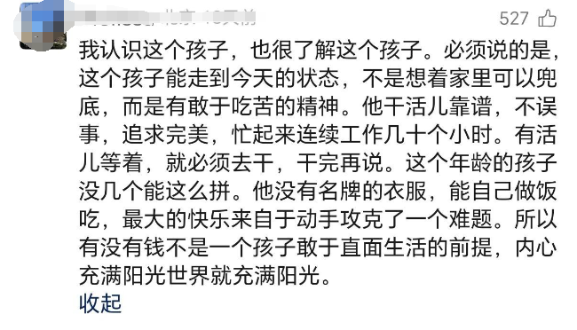 视频下面她儿子的同事也大力夸赞,说这孩子有责任心又肯吃苦,办事靠谱能力强。